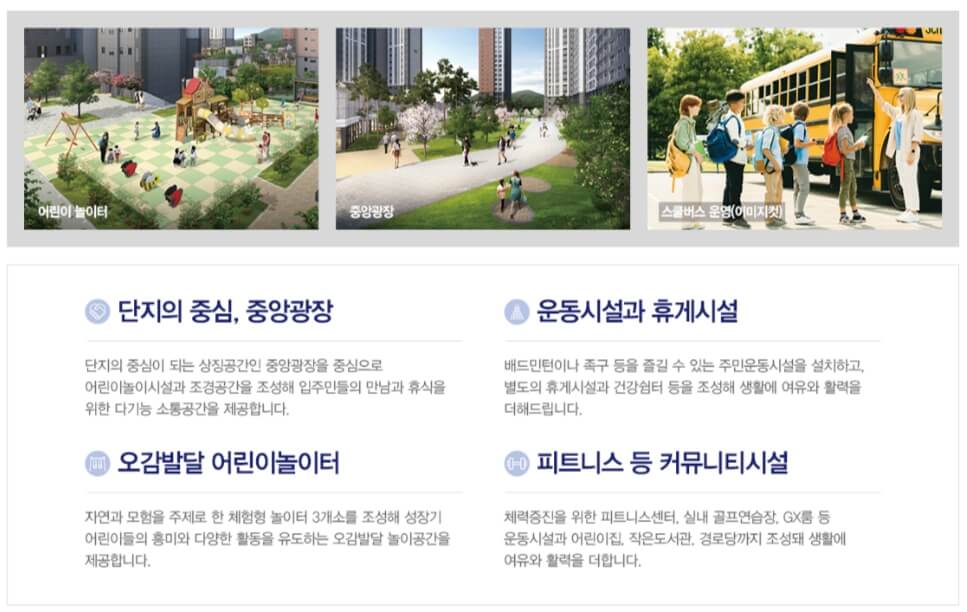 교육 환경 역시 우수합니다. 단지 바로 앞에는 옥포고, 송정초, 옥포중, 성지중 등이 위치해 있으며, 상업지역 내 다양한 학원이 있어 자녀 교육에도 최적의 조건을 갖추고 있습니다.