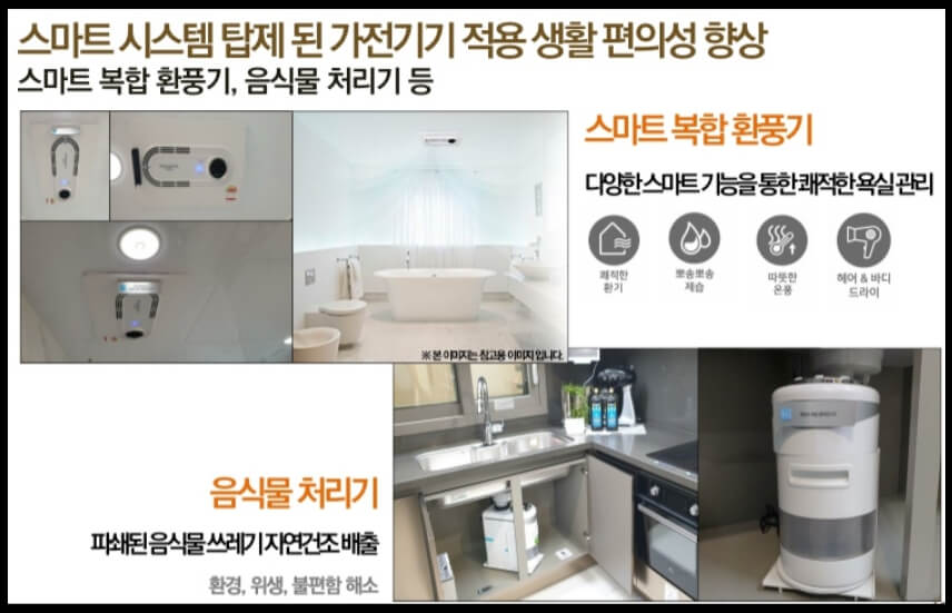 해모로 하이엔은 스마트홈 시스템을 적용하여 가전기기 관리와 외부 정보 연동을 제공합니다. 스마트 시스템을 탑재한 가전기기를 적용하여 생활 편의성을 향상시키며, 스마트 복합 환풍기, 음식물 처리기 등 다양한 품목을 무상으로 제공합니다.