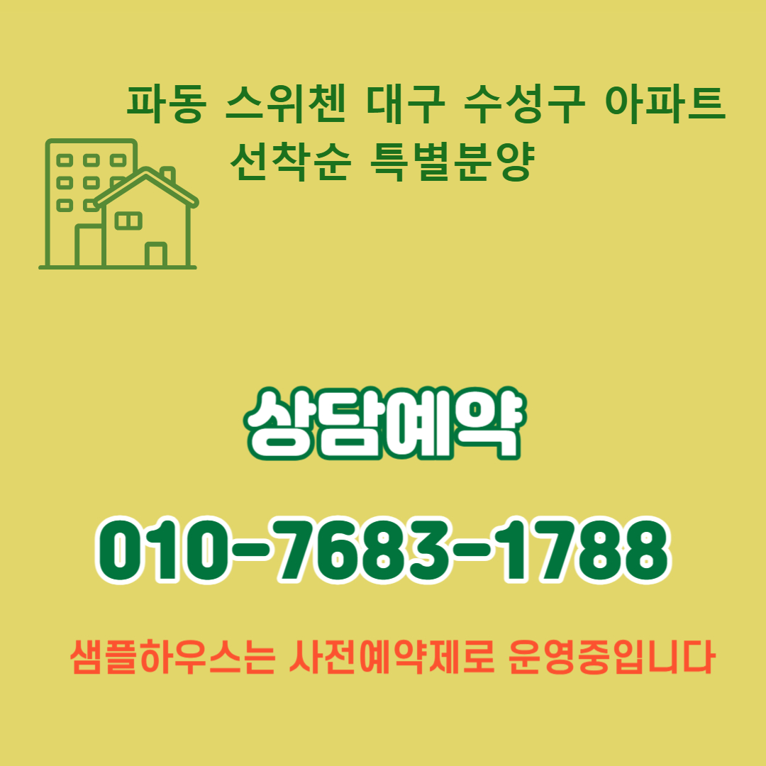 - 학군: 파동초, 수성중, 능인고, 경북고 등 명문 학교들이 인접하여 자녀 교육 환경이 우수합니다.