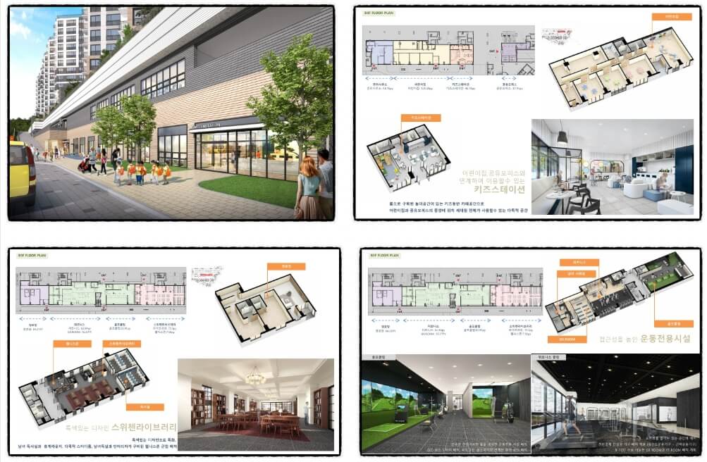 - 독서실과 어린이집: 학습과 육아를 위한 지원 공간이 포함되어 있습니다.