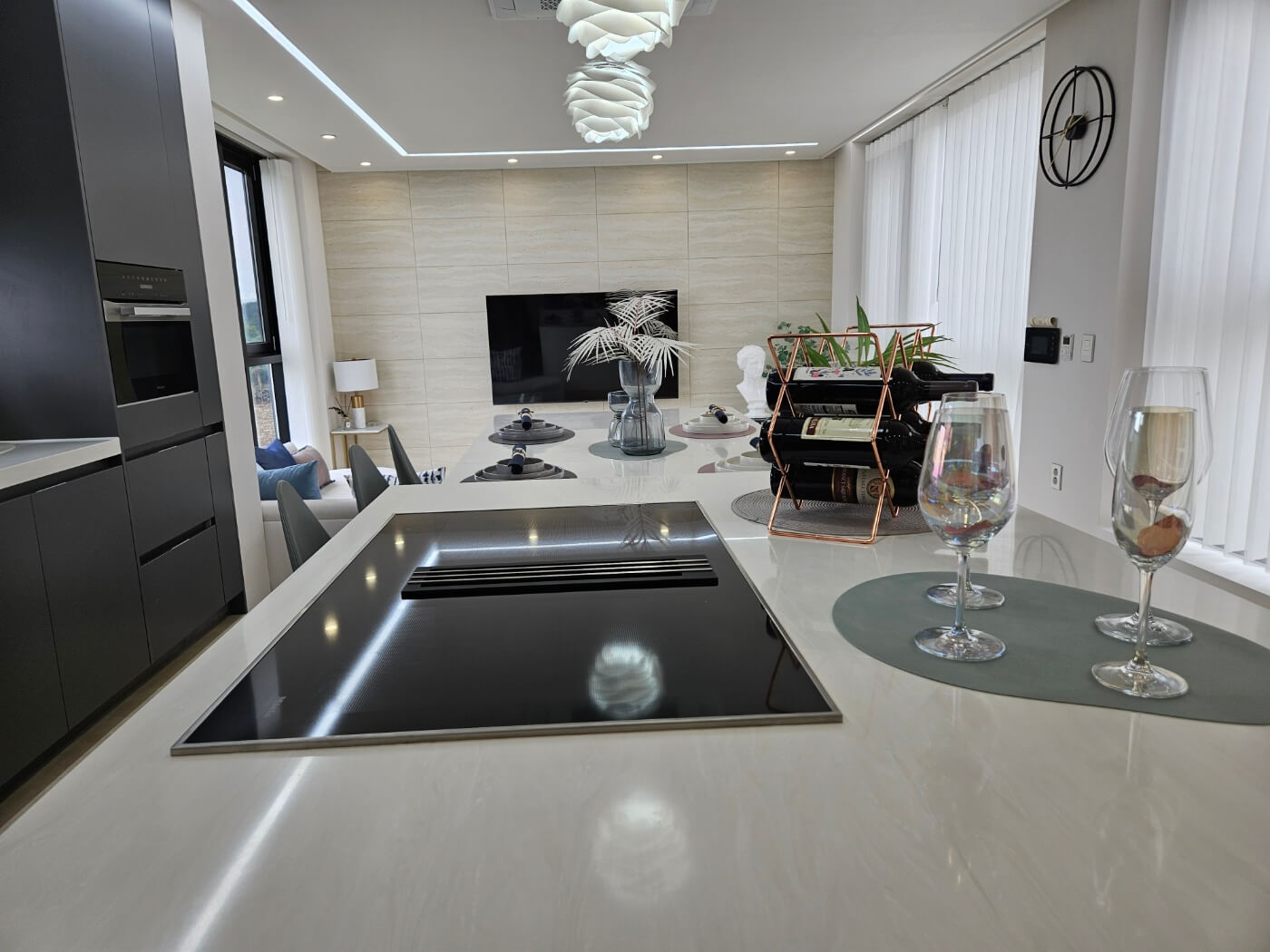 루체비스타 타운하우스는 모든 세대가 최고급 사양으로 완벽하게 준비되어 있습니다. 각 세대에는 시스템 에어컨 7대, 빌트인 냉장고, TV, 세탁기, 건조기, 스타일러, 식기세척기 등 풀옵션이 갖춰져 있어 입주 후 별도의 추가 구매 없이 바로 생활을 시작할 수 있습니다. 특히, 히노끼 욕조가 설치된 마스터룸은 하루의 피로를 풀기에 최적의 공간을 제공하며, 밀레 주방 시스템과 듀퐁사 아일랜드 주방은 주방에서의 생활을 한층 더 편리하고 즐겁게 만들어 줍니다. 또한, 시스템 도어락, LG지인 시스템 창호와 이건 창호 등 최신 설비가 적용되어 있어 안전하고 편리한 생활을 보장합니다.
