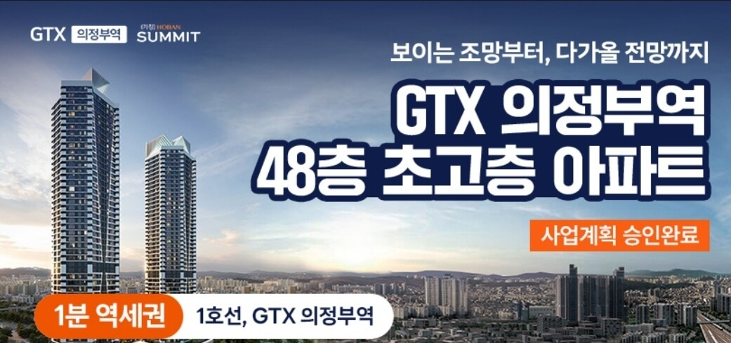의정부역 호반써밋은 초고층 주상복합 단지로서의 상징성과 상품성을 두루 갖췄습니다. 교통, 교육, 자연환경, 생활 인프라를 아우르는 종합적인 장점은 물론, GTX-C 노선 개통이라는 미래 호재까지 더해져 높은 성장 가능성을 보입니다.