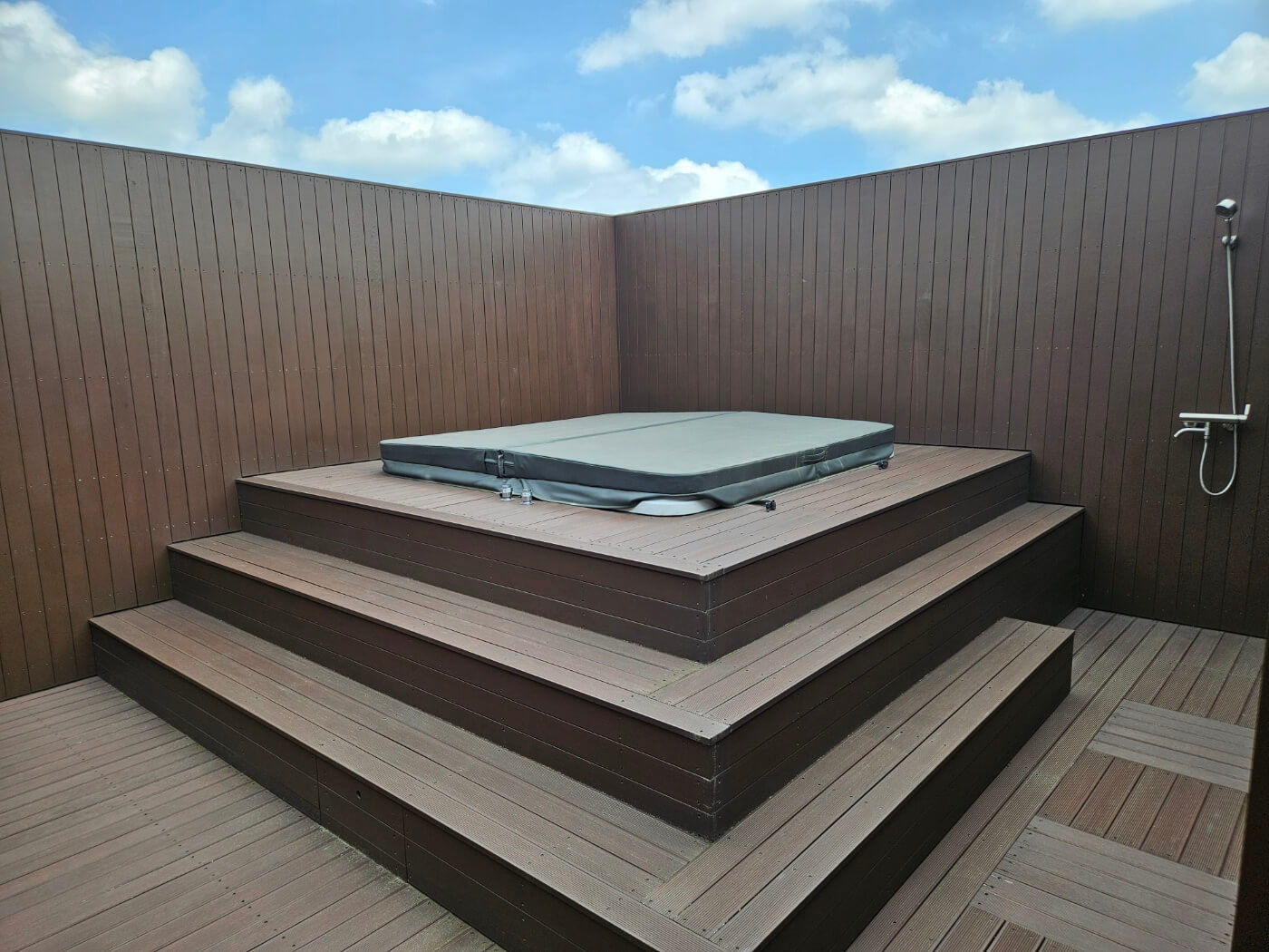 - 4인용 월풀 설치로 제주의 풍경을 배경으로 여유로운 목욕과 물놀이 가능.