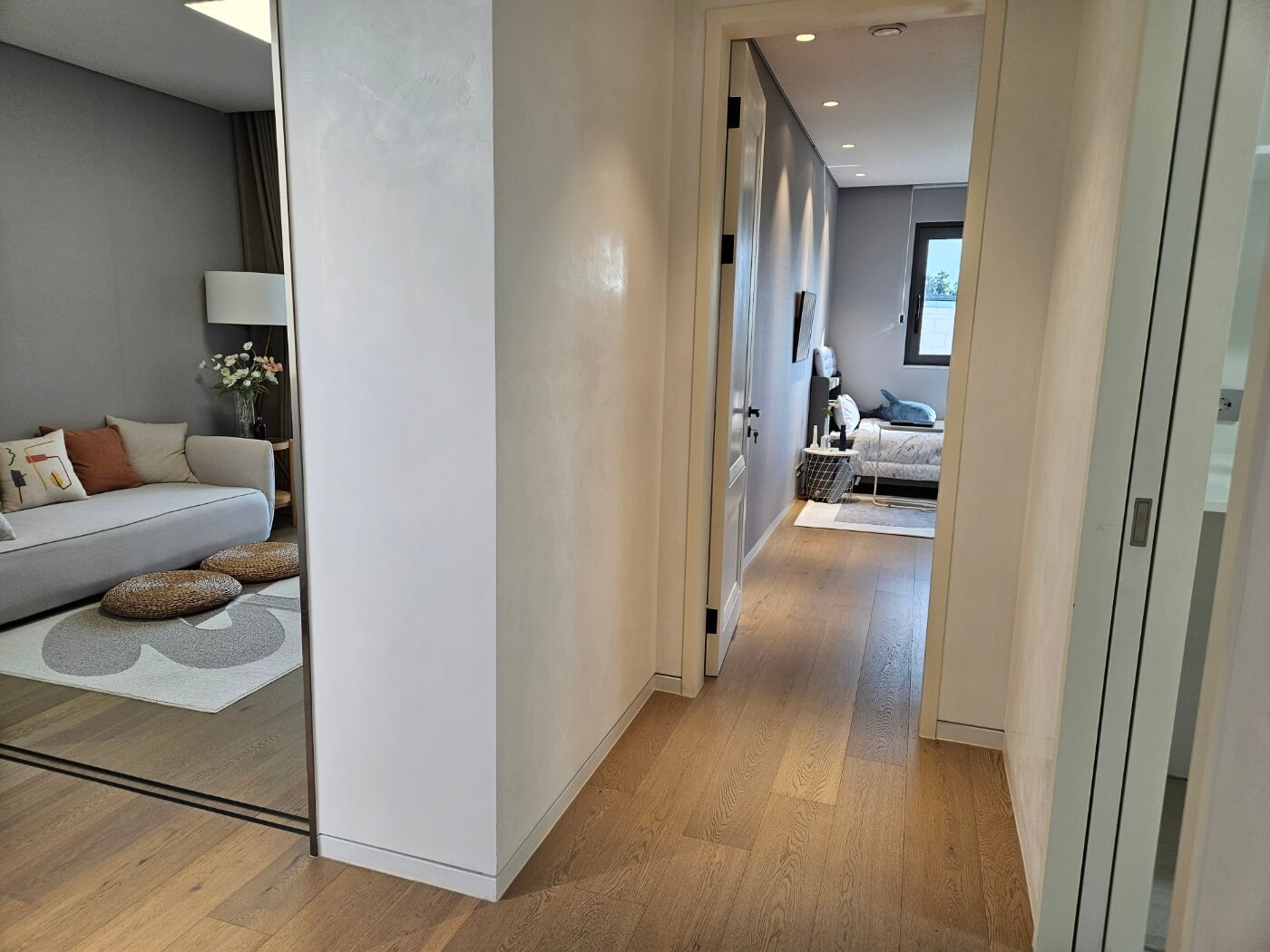 두 번째 침실 또한 붙박이장이 설치되어 있으며, 전용 욕실이 함께 제공됩니다. 거실은 알파룸으로 활용 가능하며, 테라스와 연결되어 있어 공간 활용도가 높습니다.