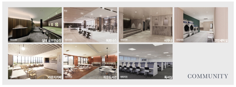 이번 제일풍경채 센트럴파크는 대규모 단지로, 다양한 대형 커뮤니티 시설을 갖추고 있습니다. 피트니스, GX룸, 사우나, 실내 골프연습장, 라운지 카페, 코인 세탁실 등 생활을 편리하게 해주는 시설들이 마련되어 있습니다.