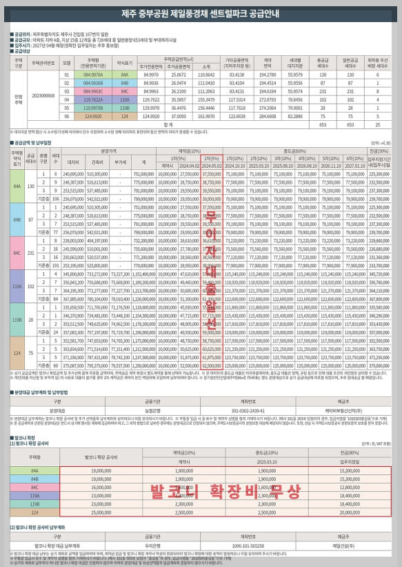 이 단지의 분양가는 3.3㎡당 평균 2425만원으로 작년 제주 민간 아파트 평균 분양가보다 낮은 수준에 위치합니다. 1차 계약금은 5%이며, 계약 시 1000만 원의 정액 계약금과 잔액을 2회에 나눠서 지불해야 합니다. 또한 2차 계약금은 5%로 책정되어 있습니다. 발코니 확장비는 무상 혜택으로 제공되어 분양자들의 편의를 돕고 있습니다.