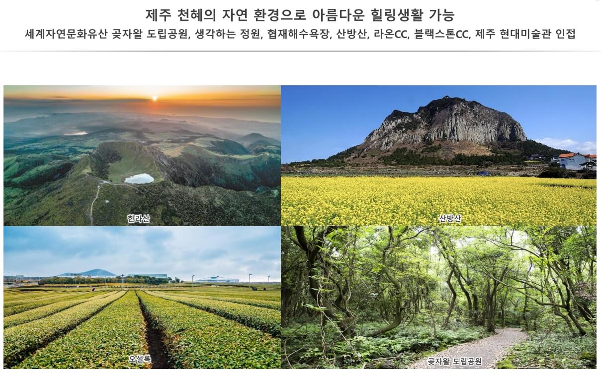 단지 인근 곶자왈공원, 생각하는 정원, 저지오름 등 자연과 벗하는 힐링