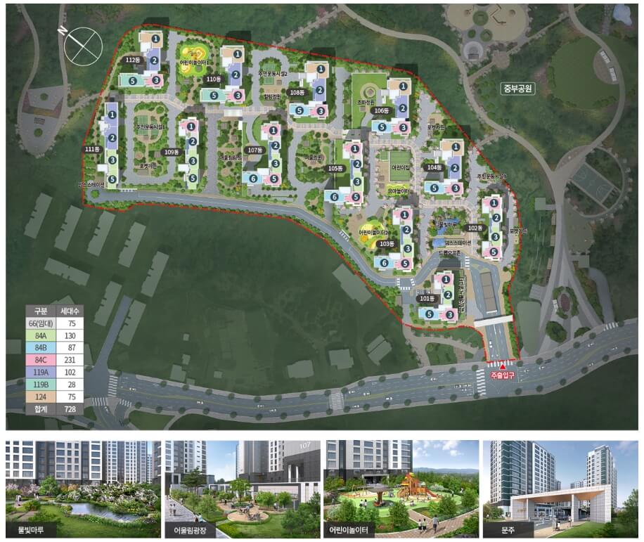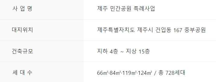 제주중부공원 제일풍경채 센트럴파크 단지는 지하 4층부터 지상 15층까지, 총 12개 동으로 구성되며 728 세대가 분양될 것입니다.