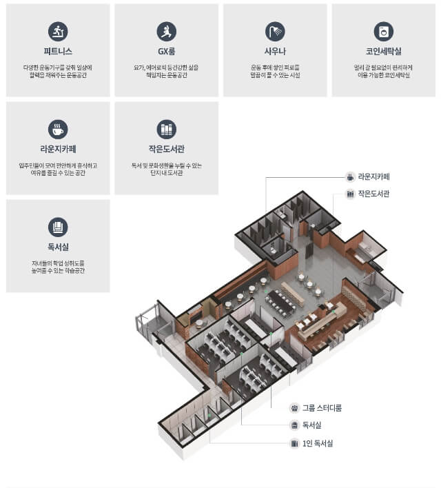 이 외에도 단지 내에는 자연테마정원과 커뮤니티 시설로 피트니스, GX룸, 사우나, 실내 골프연습장, 라운지카페, 코인세탁실 등이 마련되어 있습니다. 또한, 발코니 확장 서비스와 주요 시설에 대한 신경 쓰임이 강조되고 있습니다.