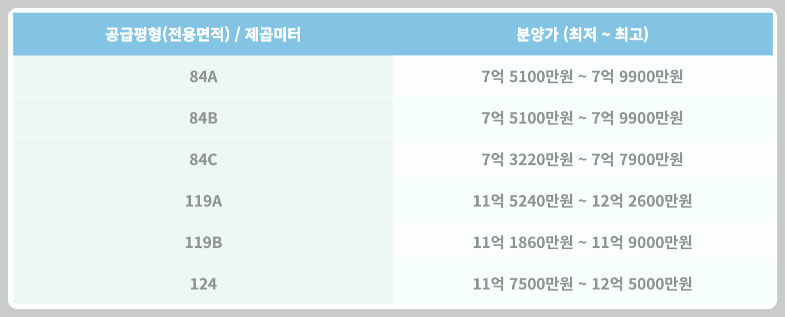 임대 66 75세대/ 분양 84/119/124타입 653 새 대 총 728세대 공급예정