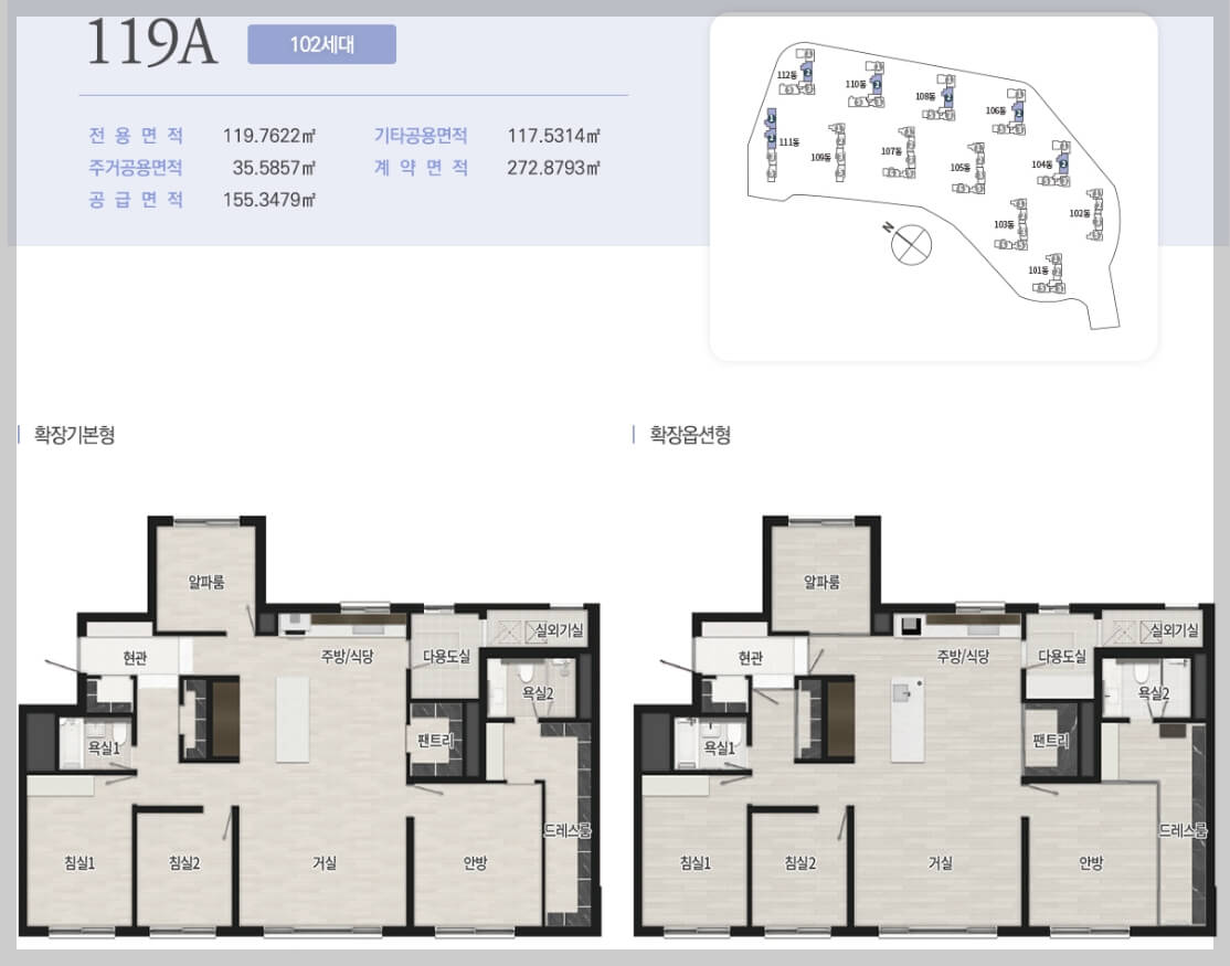 발코니 확장비는 모든 아파트에서 필수적으로 추가되는 옵션인데, 이 단지에서는 타입별 1,600만 원에서 2,500만 원으로 책정되었지만, 제일건설은 수요자들의 부담 완화를 위해 무상으로 지원하기로 했습니다. 이는 수요자들이 체감하는 실질 분양가를 더욱 낮추는 효과를 가져올 것입니다.