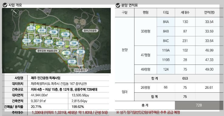 임대 66 75세대/ 분양 84/119/124타입 653 새 대 총 728세대 공급예정