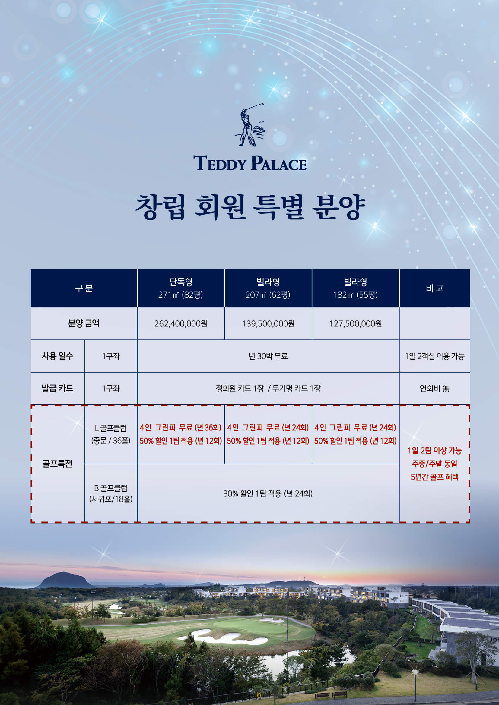 구좌 분양 시 1년 30박 무료 숙박 & 5년 골프 혜택 제공