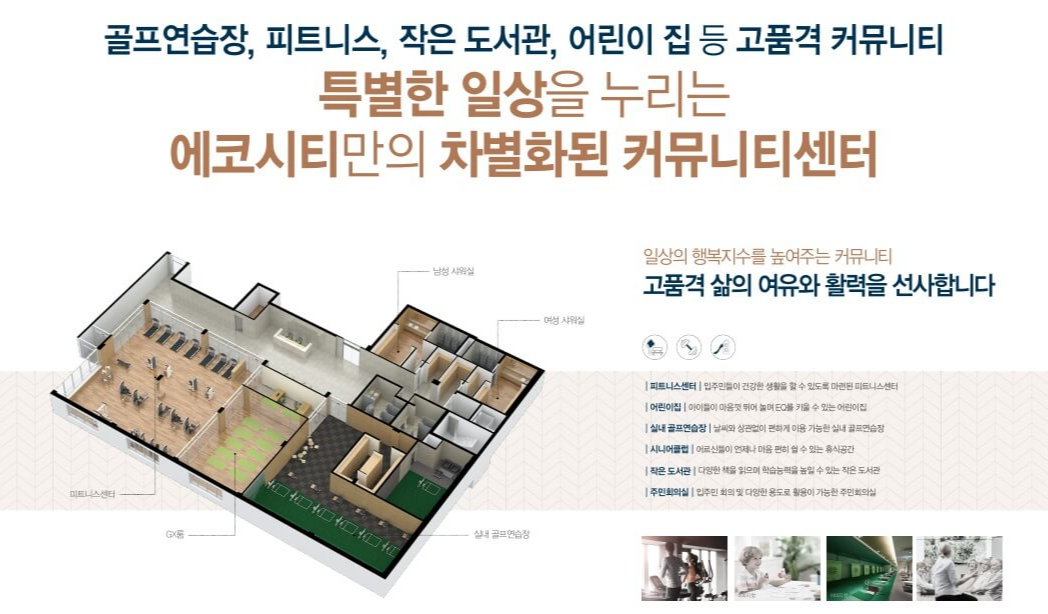 괴산 에코시티는 입주민의 생활 만족도를 높이기 위해 다양한 커뮤니티 시설을 갖추고 있습니다.