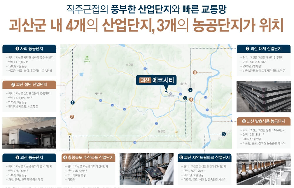 - 괴산대제일반산업단지, 괴산발효식품농공단지 차량 10분 거리
