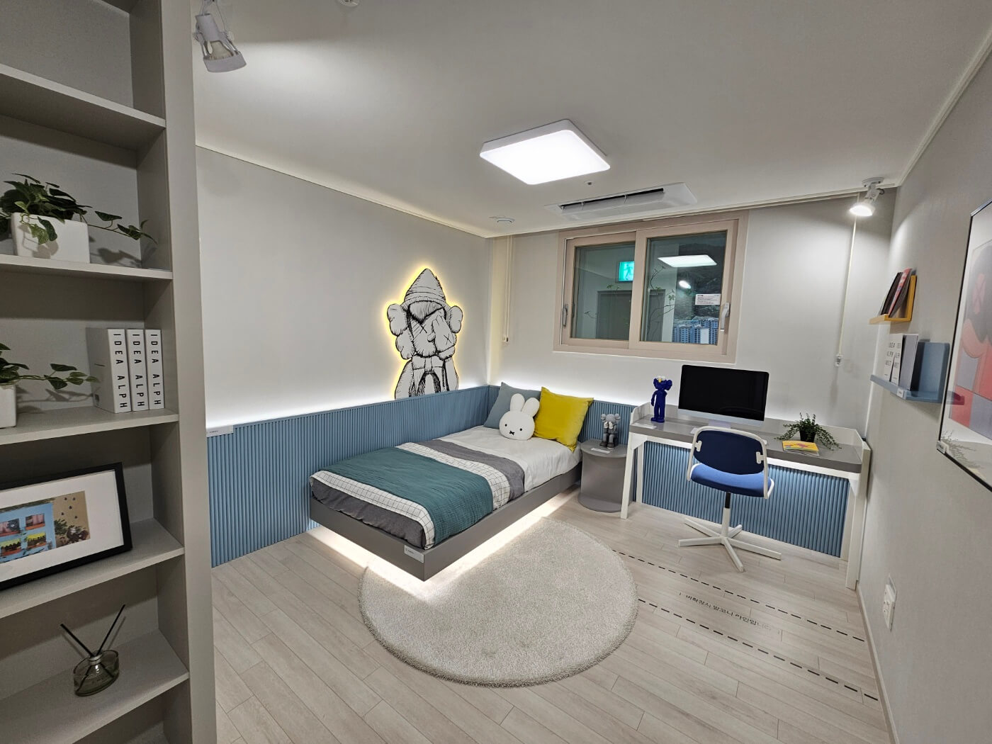 기존 안방에 세탁실이 포함되어 있어 불편했던 점을 개선하여, 침실 공간을 더욱 넓고 효율적으로 사용할 수 있도록 설계했습니다.