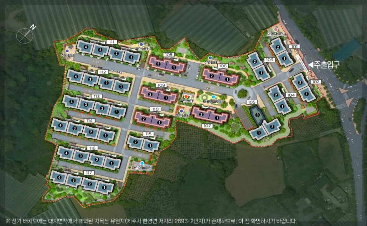사업지는 제주시 한경면 저지리 내에 위치하며, 제주공항 및 서귀포항 등 중요 교통시설과의 접근성이 우수합니다. 또한 영어교육도시, 신화월드, 다양한 관광지, 공원 등의 생활 편의시설이 인접해 있어 편리한 생활이 가능합니다.