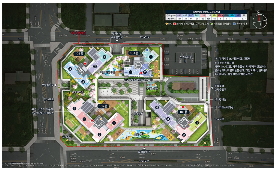 주차대수:997대(판매시설 105대 포함, 판매시설 제외 892대 세대 당 1.32대)